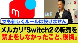 メルカリ転売 メルカリ幹部が激白「Switch2転売は禁止すべきだった」今さらな反省に批判殺到の理由 いつもご視聴いただき、ありがとうございます! ゲームやアニメ、ネットの気になる話題をサクッと知りたいあなたへ。 このチャンネルでは、見逃せない最新ニュースや世間を騒がせている ”あの事件”の真相などを、ネットの反応も交えながら分かり... 2025.10.21 メルカリ転売